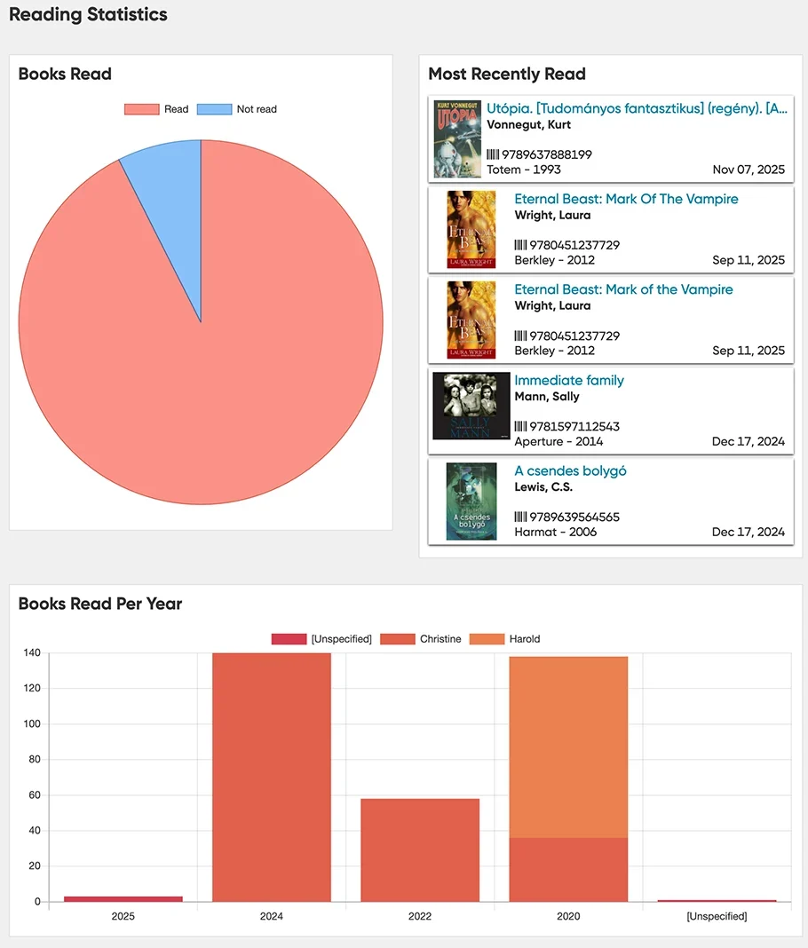 - A “Books Read” pie chart, showing your Read/Not Read books.