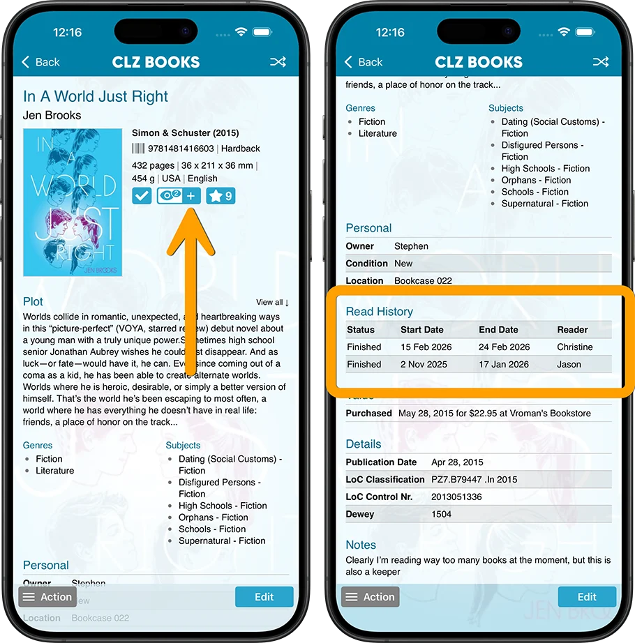 The CLZ Books app has always allowed users to track whether they had read a book (Yes or No), plus a “Read Date”. Simple and effective. However, we kept getting requests for a more advanced way to track one’s reading history. Some users requested to track multiple read sessions, some wanted to enter both Start and End Dates or even allow reading progress, yet other users suggest to allow keeping track of multiple readers.