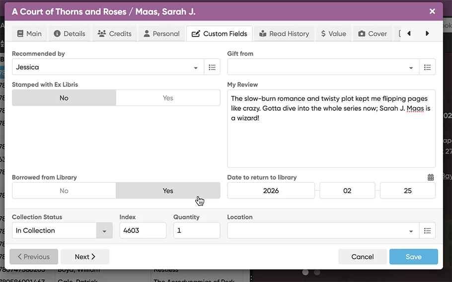 Of course, you can also use the Edit Multiple screen to edit your fields in batch for many books in one go!