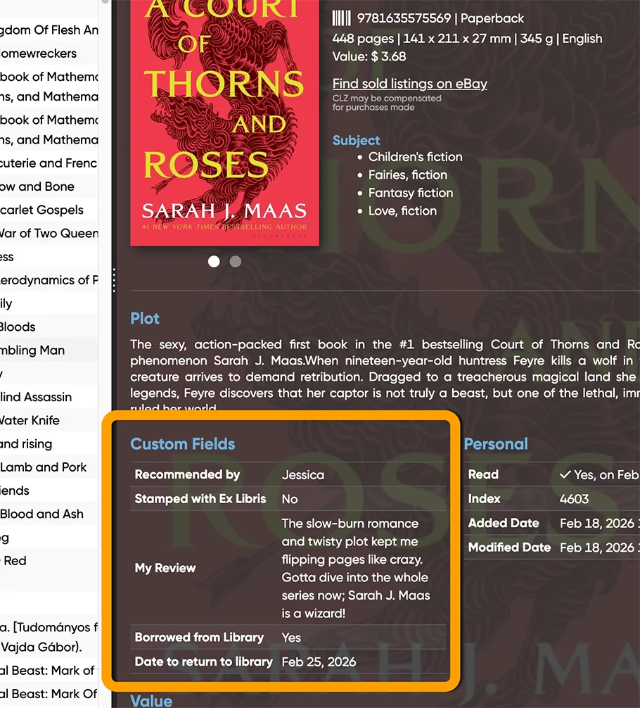 The Custom Fields feature is now live for the CLZ Books Web web-based program only. But… it is also coming to the CLZ Books mobile app! We have just started on that and we hope we can finish that project within 3 months.