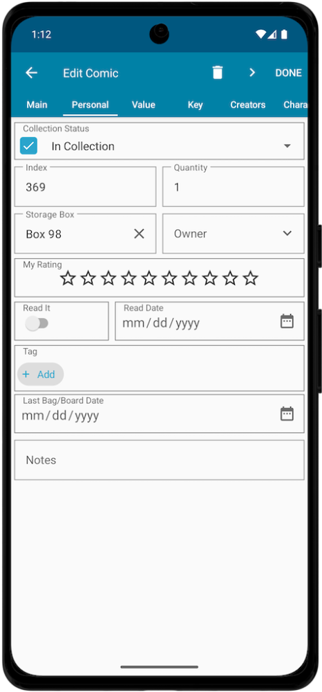 You can enter collection status, storage box, ratings, and more!