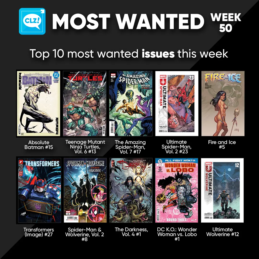 These top-10s are created by you all, the users of the CLZ app and software, as they’re based on how often these comics already appear on your wish lists in the CLZ Cloud, even before release!