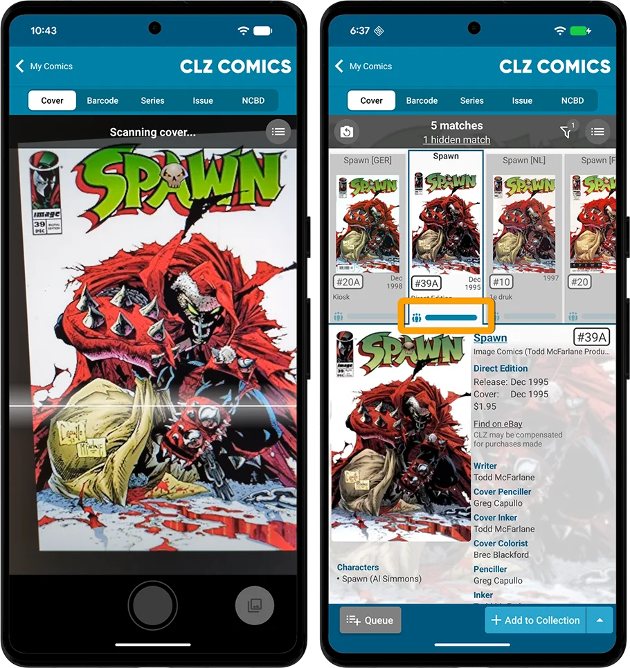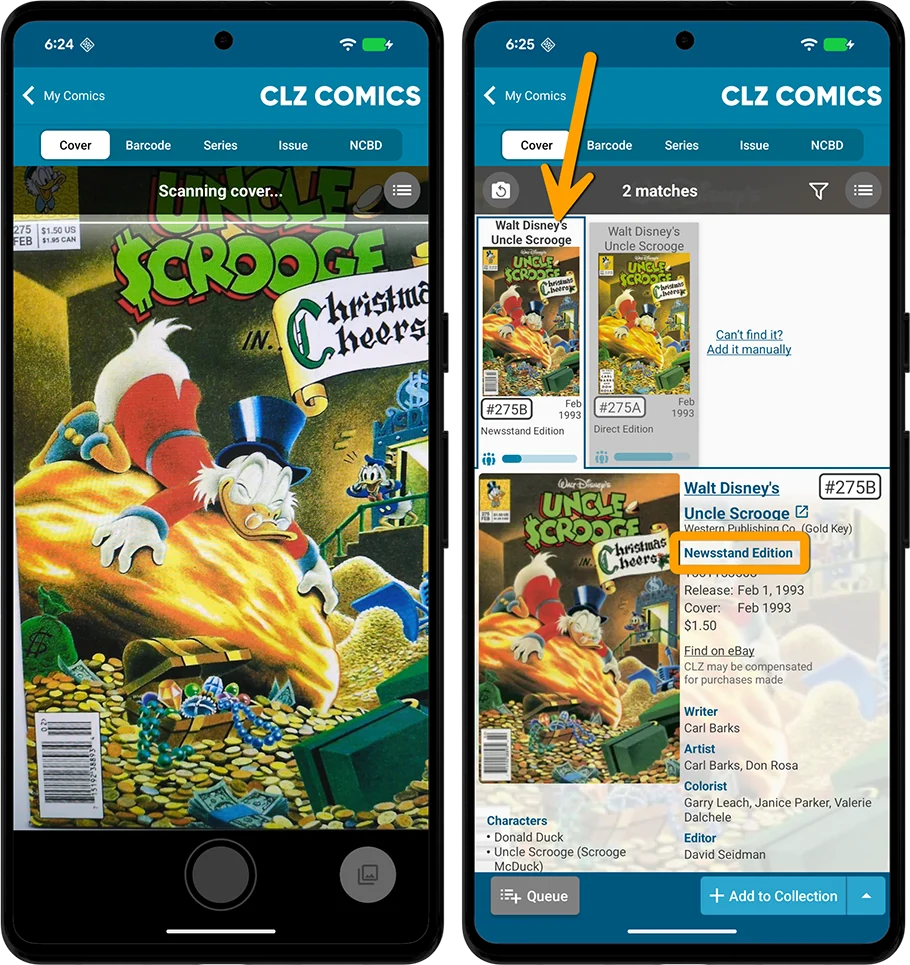 The Cover Scanner now does a better job recognizing Newsstand editions from Direct Editions. In other words, if you scan a Newsstand edition, it is more likely that the Newsstand edition will indeed be shown as the first and default match.