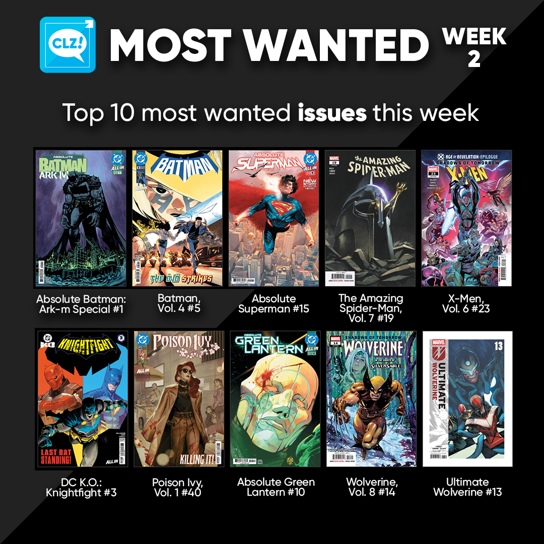 These top-10s are created by you all, the users of the CLZ app and software, as they’re based on how often these comics already appear on your wish lists in the CLZ Cloud, even before release!