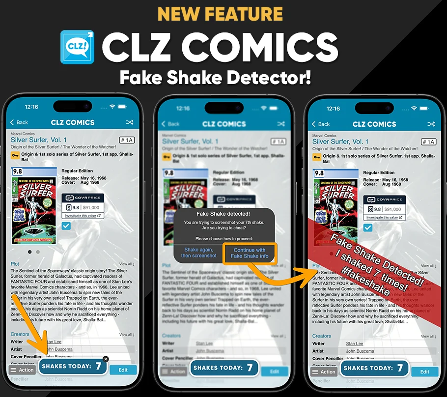This cool tool has even resulted in a recurring trend in the “CLZ Comics” group on Facebook: The Shake of the Day.