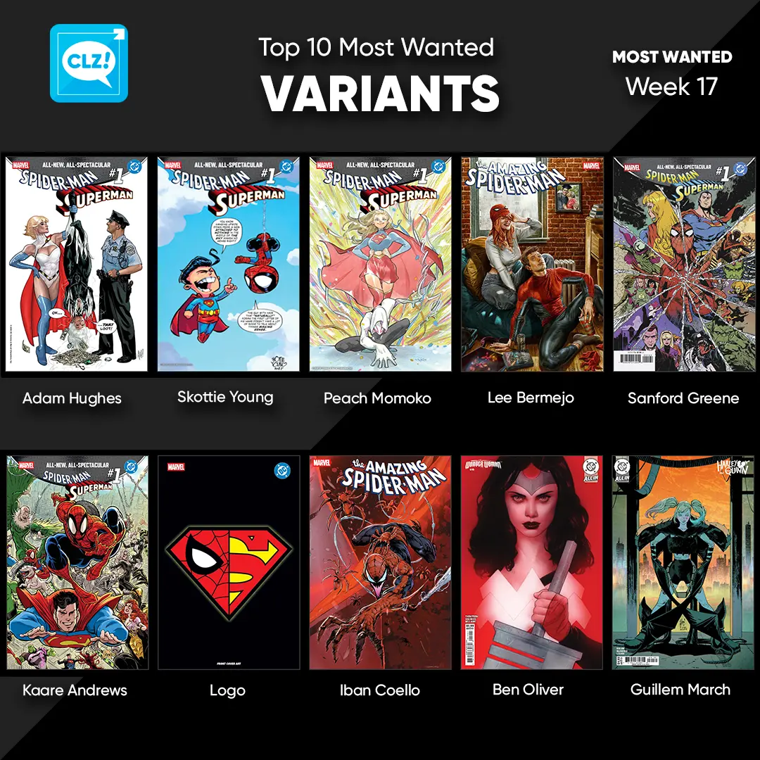 These top-10s are created by you all, the users of the CLZ app and software, as they’re based on how often these comics already appear on your wish lists in the CLZ Cloud, even before release!