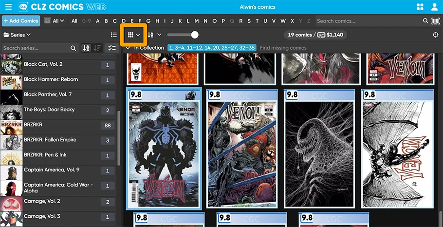 Three years ago, we introduced a new look for slabbed comics, with generated “slab frames” around the cover images, with blue/yellow/green labels at the top the grade at the top left, even showing actual Custom Labels. Making it super easy to spots your slabs between your raw comics.