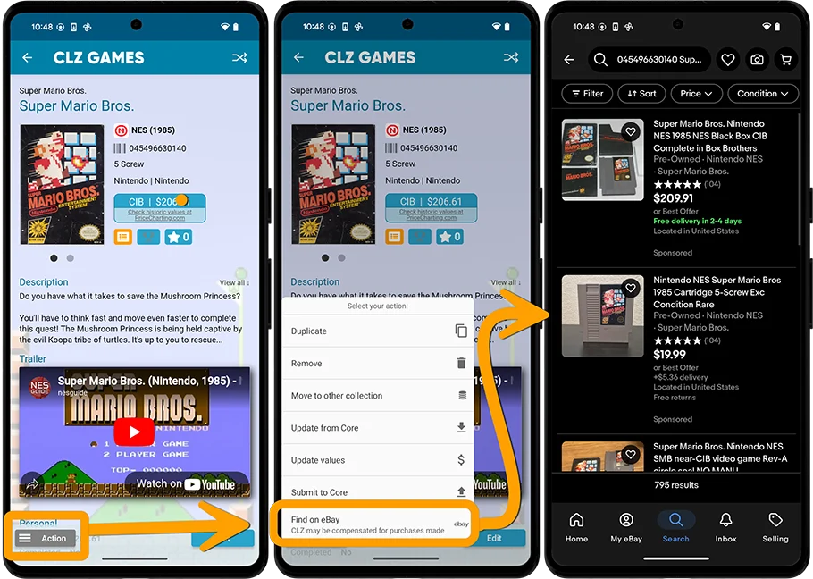 New in the CLZ Games mobile app today: the game details page now includes automatically generated eBay search links, that let you find eBay listings for that particular game.