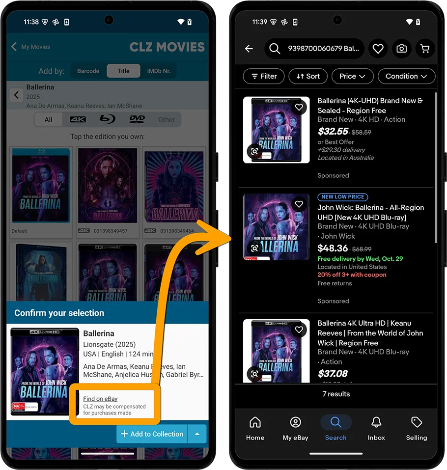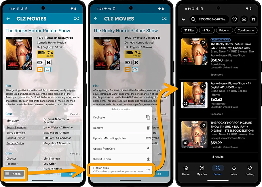 the app now includes automatically generated eBay search links, that let you find eBay listings for that particular movie.