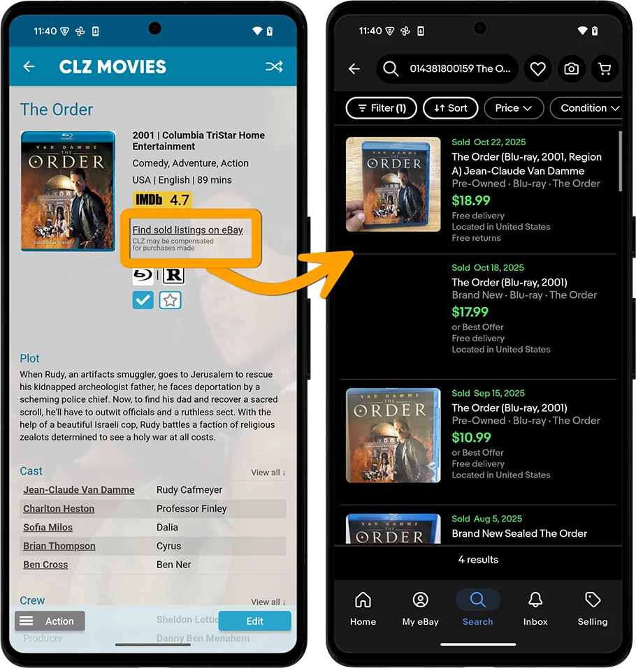 You may have already read about this when we introduced the eBay link in the CLZ Movies Web software, but… today we are introducing the same feature in the CLZ Movies mobile app:
