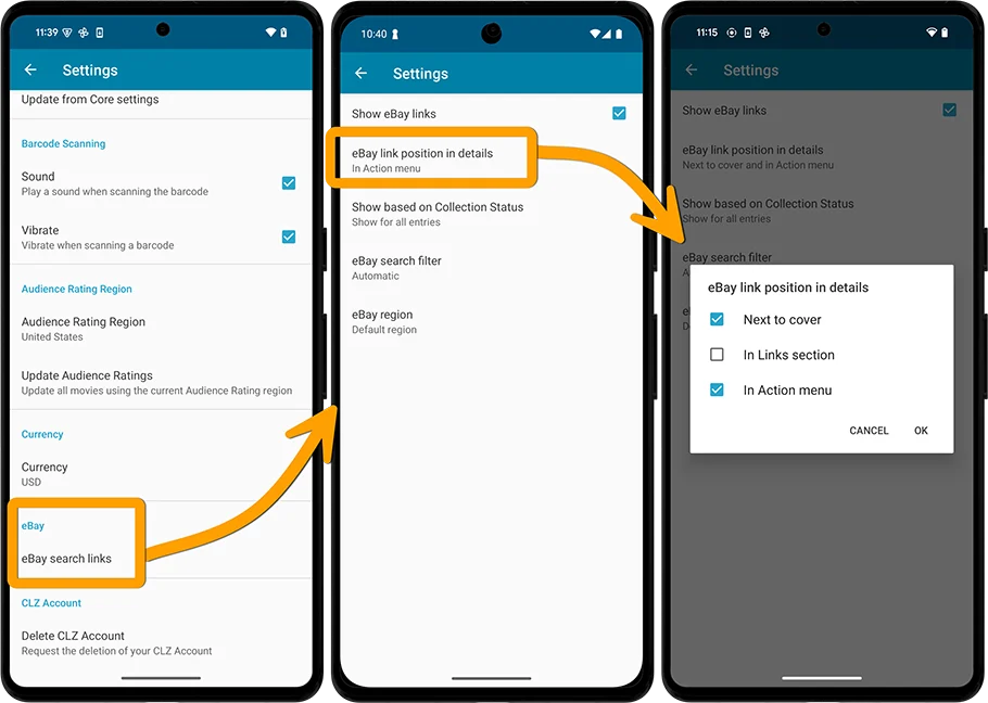 - eBay link position in details: control where the links show up