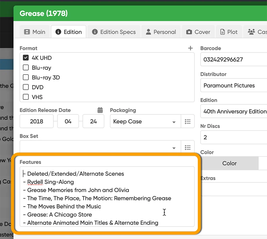 A big text fields to track available features for your DVD/Blu-ray/4K movies.