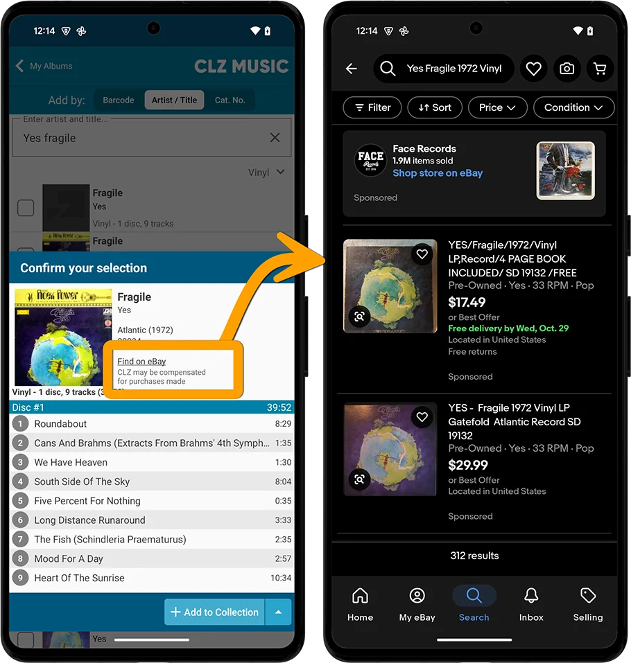 the app now includes automatically generated eBay search links, that let you find eBay listings for that particular album.
