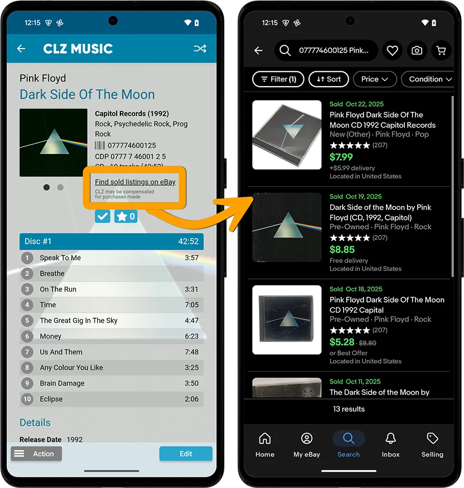 You may have already read about this when we introduced the eBay links in the CLZ Music Web software, but… today we are introducing the same feature in the CLZ Music mobile app: